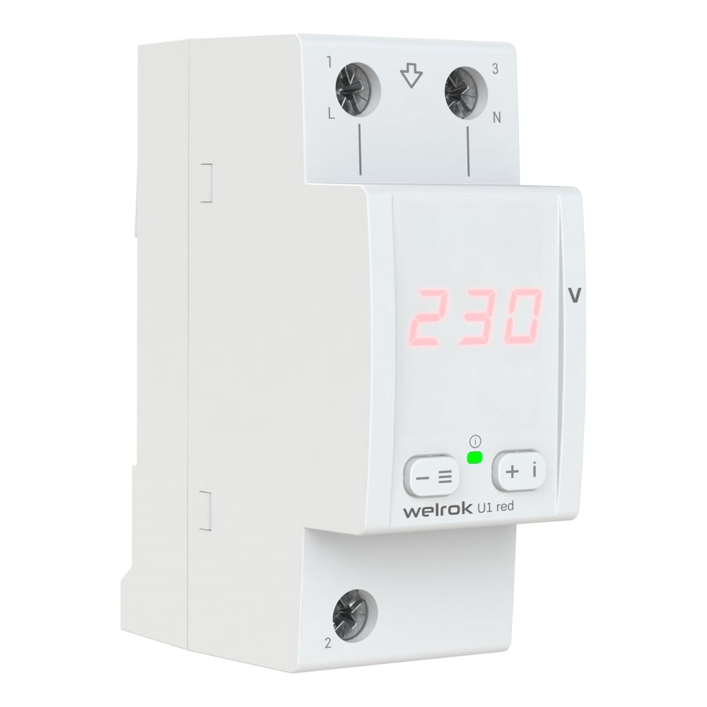 Вольтметр Welrok U1 red измеряет и отображает напряжение в сети. Сфера применения Welrok U1 red можно устанавливать как в бытовые, так и в промышленные электрические щиты для визуального контроля напряжения в сети или для совершенствования щита. Например, там, где уже есть реле напряжения без индикации. Настройка яркости экрана в режиме ожидания сделает комфортным использование Welrok U1 red независимо от места установки. Точные измерения с TrueRMS В Welrok U1 red методом TrueRMS достигается точность измерения напряжения, подверженного воздействию искажений и помех в сети. Для тех, кто доверяет своим измерительным приборам больше – есть возможность внести коррекцию в показания напряжения на экране Журнал на 100 значений Welrok U1 red в энергонезависимой памяти Журнала хранит 100 значений, которые вышли за установленные пределы напряжения. Эти данные позволяют анализировать питающую сеть. Простая установка и удобное управление Вольтметр подключается без транзита нуля. Чтобы защитить настройки вольтметра предусмотрена блокировка кнопок.