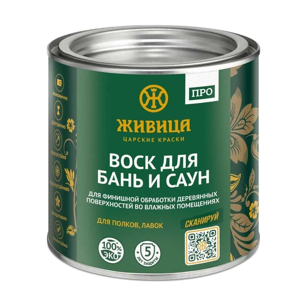 «Воск для бань и саун» ПРО объёмом 0,25 л используется для защиты деревянных поверхностей внутри парных помещений, санузлов от агрессивного воздействия воды, пара, температурных перепадов. Этим средством обрабатывают полки, стены, декоративные элементы, мебель и банные принадлежности: ушата, бочки, кадки, ковши. Используется как самостоятельный продукт, а также в качестве финишного покрытия после применения «Масла для бань и саун» и «Баня ПРО». Износостойкий жаропрочный воск с повышенным содержанием карнаубы препятствует появлению бактерий, грибка, почернения. Он подчёркивает природную текстуру дерева, придавая ему прозрачно-медовый оттенок. Подходит для хвойных и лиственных пород. Средство устойчиво к перепадам температур и влажности, не выделяет токсичные вещества под влиянием пара и высоких температур. Глубоко впитываясь в структуру дерева, воск создаёт стойкое армирующее покрытие в поверхностном слое древесины. Использование колера: не колеруется. Натуральный состав: карнаубский воск, оксидированное льняное масло, сосновая смола (живица), живичный скипидар двойной очистки, сиккатив без свинца. Расход продукта на 1 л: 1 слой — 35-40 кв. м, 2 слой — 45 кв. м.