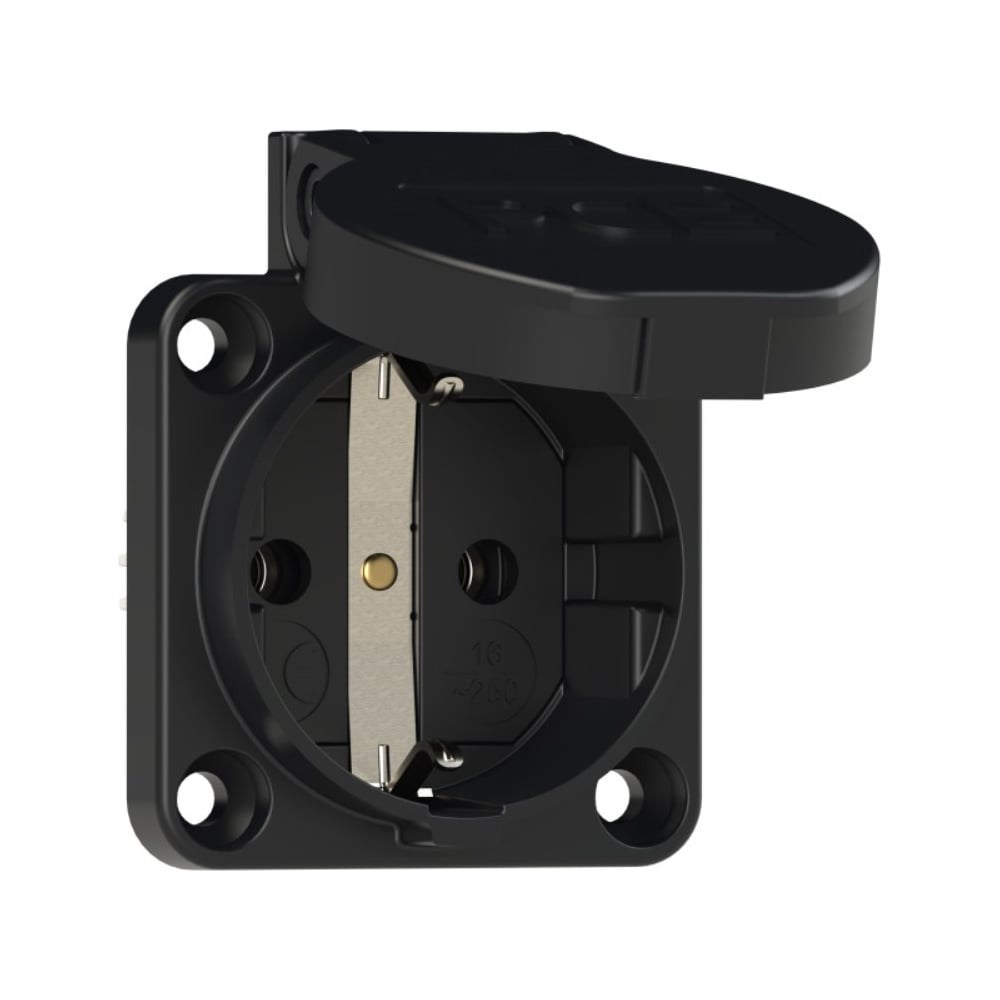 Встраиваемая розетка PCE 16A 220V 2P+E IP54 50х50 подключение сзади, черная 105-0s имеет следующие особенности: Огнестойкость и термоустойчивость. Высокая устойчивость к различным химическим веществам. Прекрасная устойчивость к ударам. Отсутствие кадмия т галогенов (фтора, хлора, с большой жесткостью и твердостью, брома, йода, астата). Очень высокие изоляционные свойства. Высокая термическая стойкость (само затухающий материал). Высокая стойкость на разрыв. Соответствие норме RoHS 2002/95/EG. Высокая стойкость к истиранию. Высокая стойкость к атмосферным изменениям. Винтовые клеммы. Пластмасса: PA6. Контакты: латунные - чтобы заказать контакты, покрытые никелем, следует добавить в конце артикула „v“.