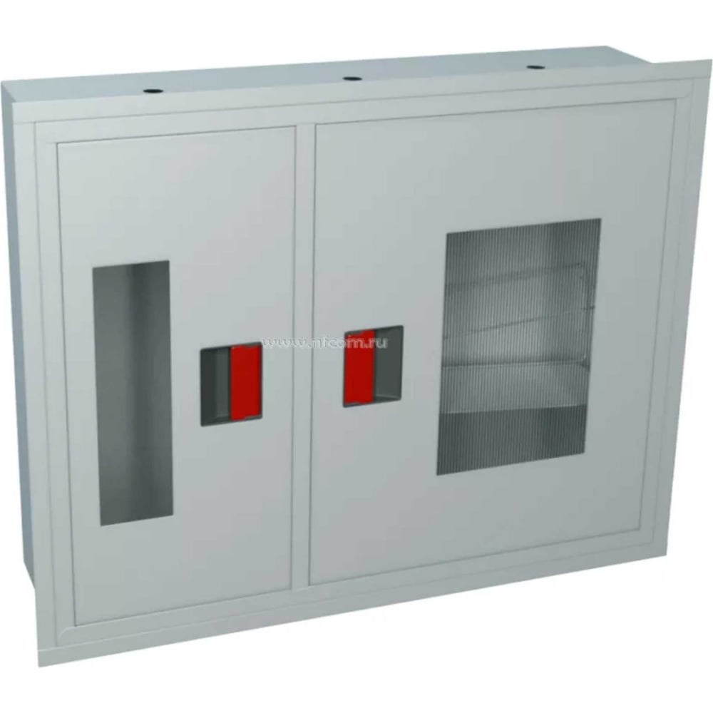 Шкаф пожарный встроенный, состоит из двух отсеков, размещенных горизонтально предназначен для размещения и хранения в первом отсеке оборудования пожарного крана внутреннего противопожарного водопровода (рукава пожарного (диаметром 51 или 66 мм) в сборе со стволом и пожарного вентиля (клапана). Для размещения пожарного рукава и ствола, отсек оборудован кассетой (турелью). Второй отсек предназначен для размещения одного огнетушителя. По типу монтажа – встроенный, оборудован смотровым окном в дверце шкафа.