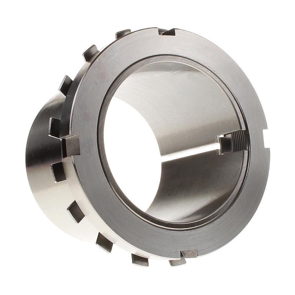 Закрепительные втулки используются для монтажа подшипников с коническим отверстием на цилиндрические валы. Втулки имеют конусный шток и продольный надрез для подгона к отверстию подшипников.