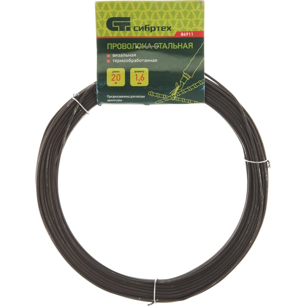 Стальная проволока Сибртех 84911 длиной 20 м и диаметром 1,6 мм, термообработанная, используется в качестве строительного материала при возведении железобетонных конструкций. Пригодится для вязки арматуры и решения хозяйственных нужд.