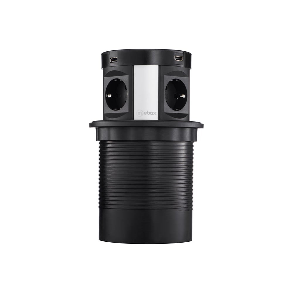 Выдвижной встраиваемый полуавтоматический блок розеток Mebax 107J черного цвета на 4 розетки, 2 usb и 2 HDMI – полуавтоматическая модель нового поколения, оснащённая самым большим количеством портов во всей линейке встраиваемых блоков Mebax. В крышку встроена беспроводная зарядка. Идеально для комплектации конференц-зала.Беспроводная зарядкаВ крышку встроена беспроводная зарядка, благодаря которой пользователь может зарядить различные устройства без необходимости использовать адаптеры и провода. Для устройств, поддерживающих стандарт Qi.Прочное стеклоУ моделей 107J USB-C и HDMI стеклянная крышка, которая придаёт устройству стильный внешний вид.Плоская крышкаКогда блок неактивен, его крышка не выступает над поверхностью стола, что делает его более удобным в использовании и снижает вероятность механических повреждений.Удобное управлениеДостаточно слегка нажать на крышку, и корпус блока плавно выдвинется наружу самостоятельно.
