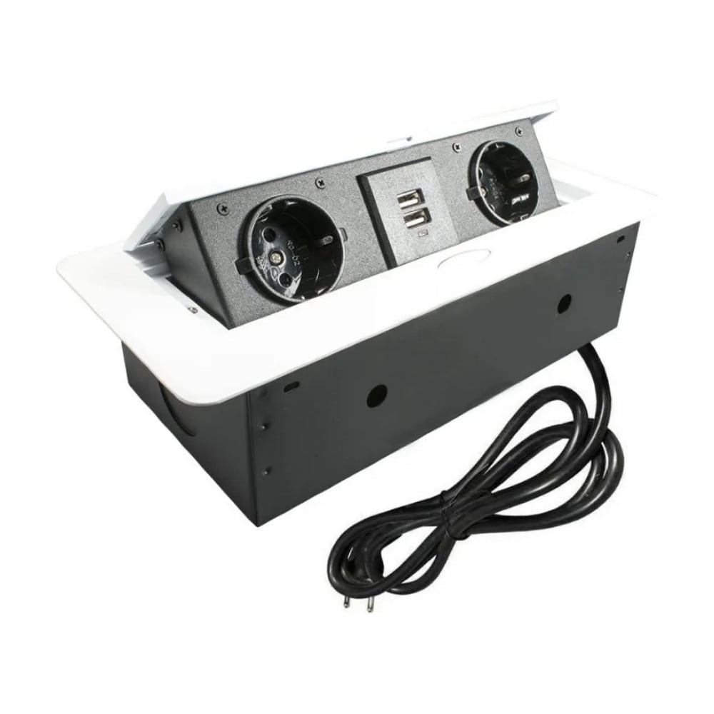 Выдвижной встраиваемый розеточный блок Inrior на 2 EURO розетки 2 USB-A, TORO-22-10 изготовлена из металла, лицевая панель выполнена из алюминиевого сплава, установочная коробка и сопутствующие элементы из стали. Что положительно сказывается на надежности и долговечности конструкции. USB - 5V, 2.1A. Максимальная мощность 2700 Вт. Скрытая розетка имеет стандарт влагозащиты IP20, однако предусмотрена начальная степень защиты от воды, на розетках установлены шторки, так же над поверхностью столешницы остается рамка 2 мм, которая предотвращает затекание воды внутрь механизма.