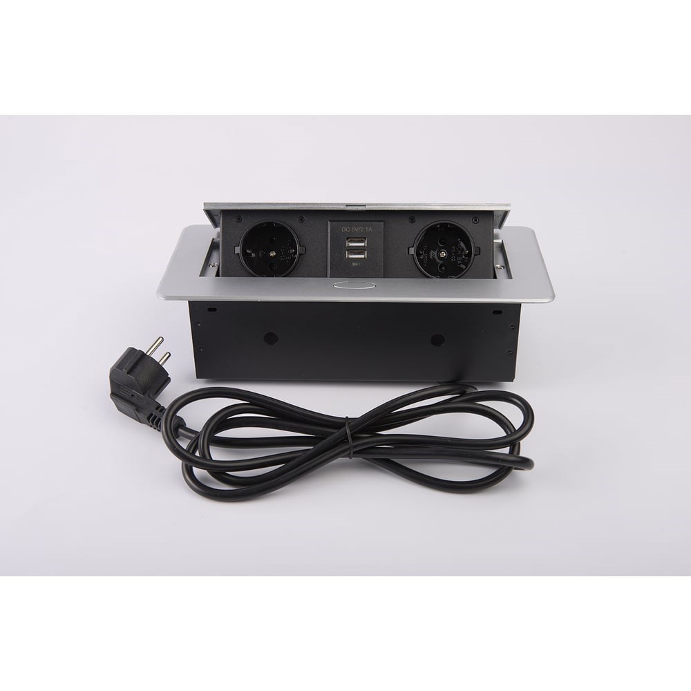 Выдвижной встраиваемый блок розеток Inrior на 2 EURO розетки 2 USB-A, TORO-22-80 для столов и столешниц, кухни и офиса, навесных шкафов и мебели. Выполнен полностью из металла, лицевая панель выполнена из алюминиевого сплава, установочная коробка и сопутствующие элементы из стали. Что положительно сказывается на надежности и долговечности конструкции. USB - 5V, 2.1A. Максимальная мощность: 2700 Вт. Скрытая розетка имеет стандарт влагозащиты IP20, однако предусмотрена начальная степень защиты от воды, на розетках установлены шторки, так же над поверхностью столешницы остается рамка 2 мм, которая предотвращает затекание воды внутрь механизма.