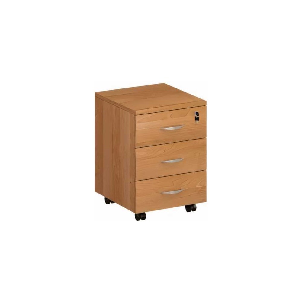 Материалы: Ламинированная ДСтП, кромка ПВХ Топ тумбы – 16 мм, кромка ПВХ 2 мм. Каркас и фасады – 16 мм, кромка ПВХ 0,4 мм. Ручки – металлические, цвет – хром матовый Особенности: Тумба имеет 3 выдвижных ящика, установленных на роликовые направляющие Верхний ящик тумбы запирается на замок Тумба устанавливается на колесные опоры Тумба поставляется в собранном виде