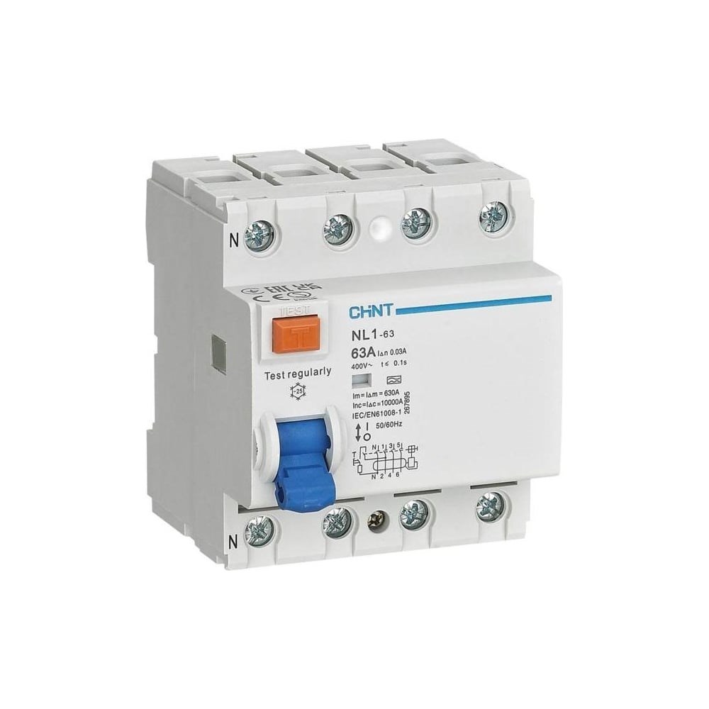 Выключатель дифференциального тока (УЗО) CHINT 4п 63А 300мА тип AC 6кА NL1-63 (R) 200231