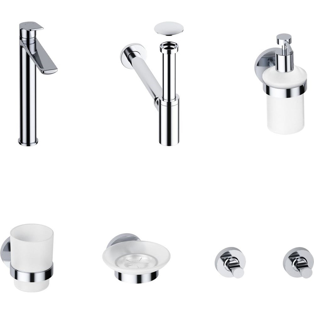 Высокий смеситель для накладной раковины Wellsee ICON! for life в наборе 7 в 1 201000291