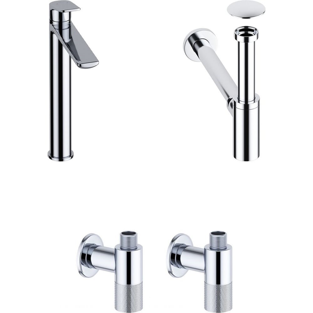 Высокий смеситель для накладной раковины Wellsee ICON! for life в наборе 4 в 1 201000131
