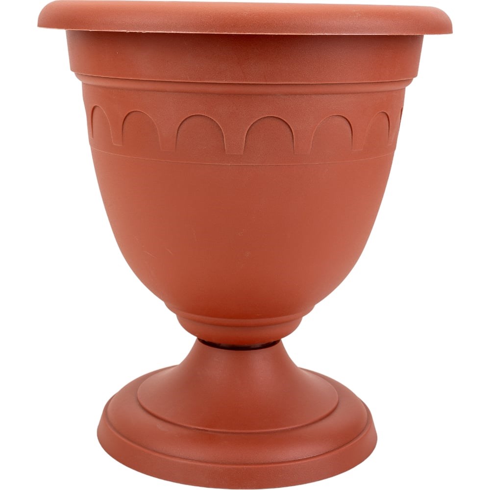Вазон, выполненный из качественного пластика, станет прекрасным элементом декора загородного дома, сада, квартиры, офиса или любого другого помещения. Имеет сборную конструкцию из 2 частей: чаши и ножки. Изделие выполнено в классическом стиле и прекрасно подойдет для выращивания цветов и однолетних растений. Вазон легко впишется в композицию дома или сада и будет служить красивым украшением.