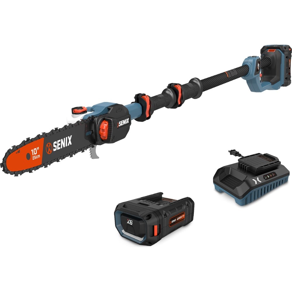 Аккумуляторный высоторез SENIX CSPX6-M-EU — высота 4,2 метра в ваших руках!60В × бесщёточный двигатель × штанга до 2,8 м × вес 3,5 кг — идеальный инструмент для обрезки веток и сучьев без использования лестницы или стремянки!Главные преимущества:Максимальная высота реза 4,2 м — обрезайте ветки без лестницы и стремянки. Регулируемая штанга — от 1,6 до 2,8 м для работы на разной высоте. Скорость цепи до 20 м/с — быстрая и чистая резка даже толстых веток. Бесщёточный двигатель 1000 Вт — высокая мощность, низкий уровень шума и долгий срок службы. Вес всего 3,5 кг — комфортная работа даже при длительном использовании.Технические характеристики:Напряжение: 60ВСкорость на холостом ходу: 8500-11000 об/минРазмер шины: 250 мм (10'')Скорость цепи: 16 м/с (режим ECO), 20 м/с (режим Max)Мощность двигателя: 1000 ВтТип двигателя: БесщёточныйЕмкость масляного бака: 130 млШаг цепи: 3/8''Максимальная высота реза: 4,2 мУровень шума: 95 дБ(А)Низкий уровень вибраций: <1,47 м/с²Режимы работы:ECO-режим (16 м/с) — для деликатной обрезки и экономии заряда.Max-режим (20 м/с) — для быстрой резки толстых веток.Для каких задач?Садовая обрезка — формирование кроны деревьев, удаление сухих веток.Уход за парками и скверами — профессиональный инструмент для садовников.Загородный дом — поддержание порядка на участке без риска для здоровья.Гарантия 2 года + поддержка по применению!Досягаемость без риска — SENIX CSPX6-M-EU превращает высокие задачи в простые!