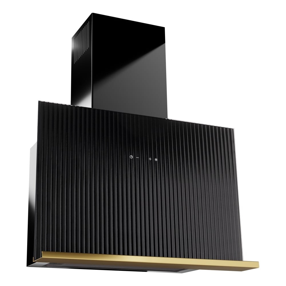 Пристенная кухонная вытяжка в стильном рифленом дизайне, подвесной съемной полкой, мощным двигателем, а также сенсорным и дистанционным управлением и 5 скоростями.