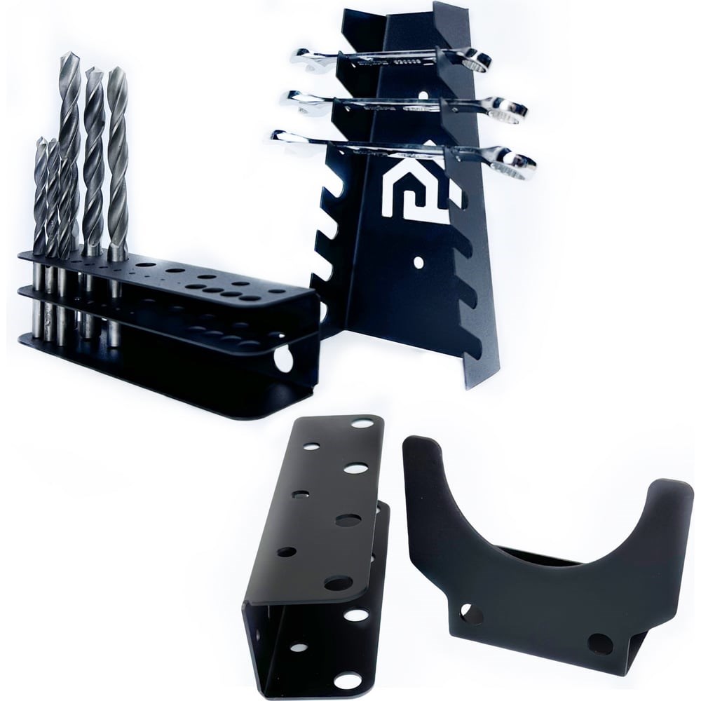 Набор 4в1 (100x80x38мм, 150x40x40мм,150x40x40мм, 85x155x35) Хранить инструменты в порядке и доступности теперь легко с настенными кронштейнами для инструментов. Держатель для болгарки НА 125 И 150 ММ. Держатель для угловой шлифмашинки, устанавливается на стену. Поможет эффективно организовать ваше рабочее пространство. Этот кронштейн идеально подойдет для хранения инструментов в гараже, в мастерской, в производственных помещениях, даже кладовке и на балконе. Держатель также имеет удобный подвес для намотки шнура питания. Держатель для крестовых и торцевых отверток. Настенный органайзер для отверток вмещает 7 отверток, любых форм и размеров. Не требует большого пространства и позволяет легко и быстро найти нужную отвертку. Держатель для гаечных ключей. Вмещает до 7 ключей. Трапециевидная форма позволяет хранить ключи различного размера. Держатель для сверл. Вмещает до 24 сверл. Сзади крепления сделаны так, чтобы можно было снимать и использоваться как настольную подставка для удобства в работе. Комплект 4 в 1 поставляется необходимым крепежом (саморезы, дюбели и заглушки) для монтажа. Все изделия покрыты износостойким порошковым покрытием, цвет черный муар. Организовывайте грамотно пространство в своем гараже или мастерской. Вы всегда будете знать, где находится нужный вам инструмент и ваша эффективность повысится в разы.