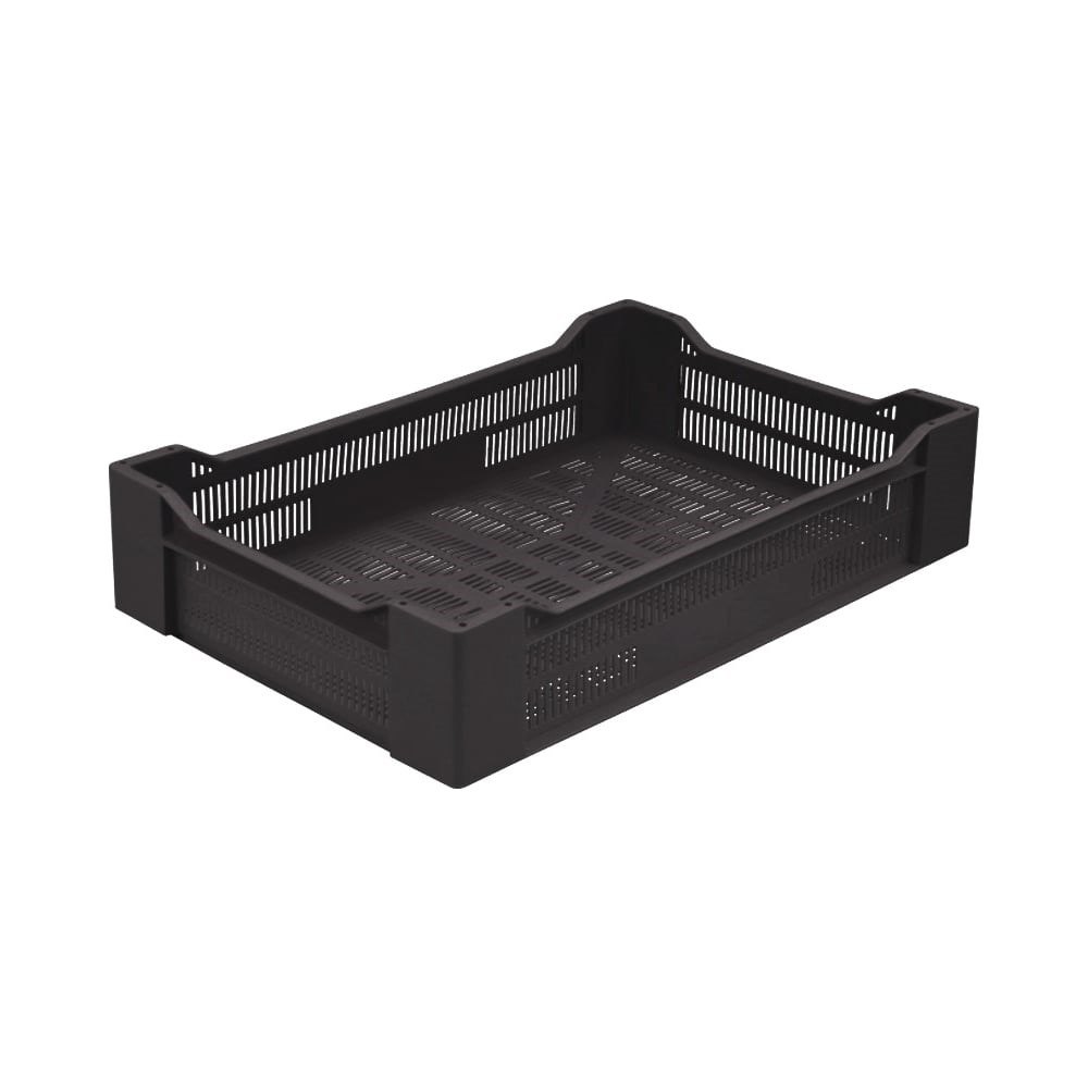Ягодный ящик п/э 600х400х135 черный Тара.ру 03662 обладает небольшой высотой, что позволяет аккуратно переносить и перевозить фрукты и ягоды без риска повредить их собственным весом.Дополнительные ребра жесткости существенно упрощают эксплуатацию и повышают предельную грузоподъемность.