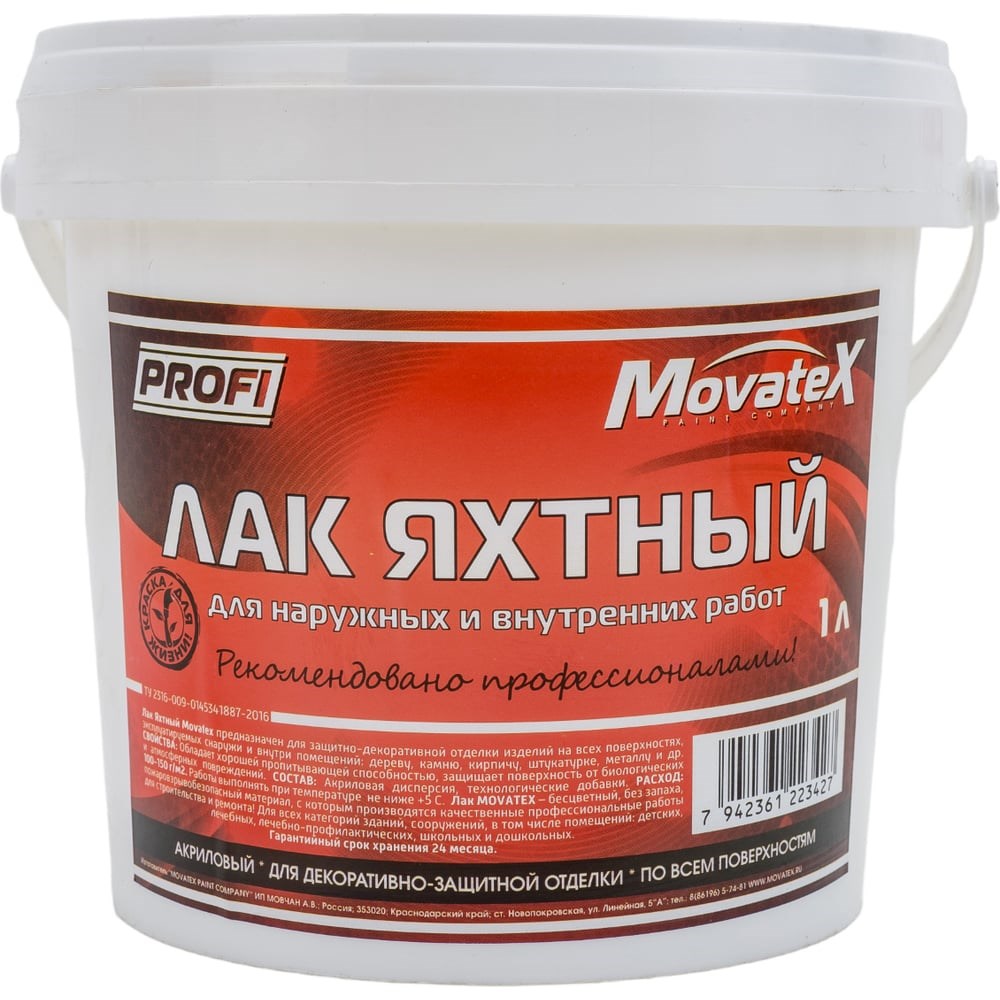 Яхтный лак Movatex PROFI для наружных и внутренних работ, 1 кг Т13710 применяется для нанесения на деревянные, каменные, кирпичные, металлические, оштукатуренные поверхности. Служит для защитно-декоративной отделки изделий, эксплуатируемых снаружи и внутри помещения. Состав на акриловой основе не имеет запаха, безопасен для окружающей среды. Антисептические добавки в составе препятствуют появлению и развитию микроорганизмов. Работы выполнять при температуре не ниже +5 градусов.