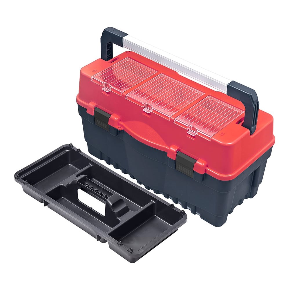 Ящик для инструментов 60х29х33см PATROL Formula S 700 Carbo 146169 разделен на общее внутреннее пространство и два блока для крепежа и прочих мелочей: отделения в крышке ящика; лоток под крышкой. В верхнем органайзере можно установить необходимое количство поперечных стенок для оптимального распределения свободного места.