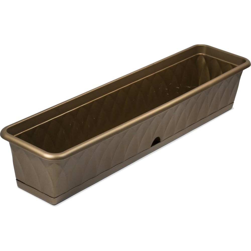 Ящик для растений с поддоном Martika Сиена 93 см, золотой С175-03-ЗОЛ подходит для выращивания растений, как в интерьерном, так и ландшафтном дизайне. На дне имеются дренажные отверстия - лишняя вода сливается в поддон, который крепится к ящику. Конструкция предусматривает систему прикорневого полива - можно поливать сразу в поддон, вода постепенно по мере высыхания земли напитывает субстрат, и растения получают необходимое количество влаги.