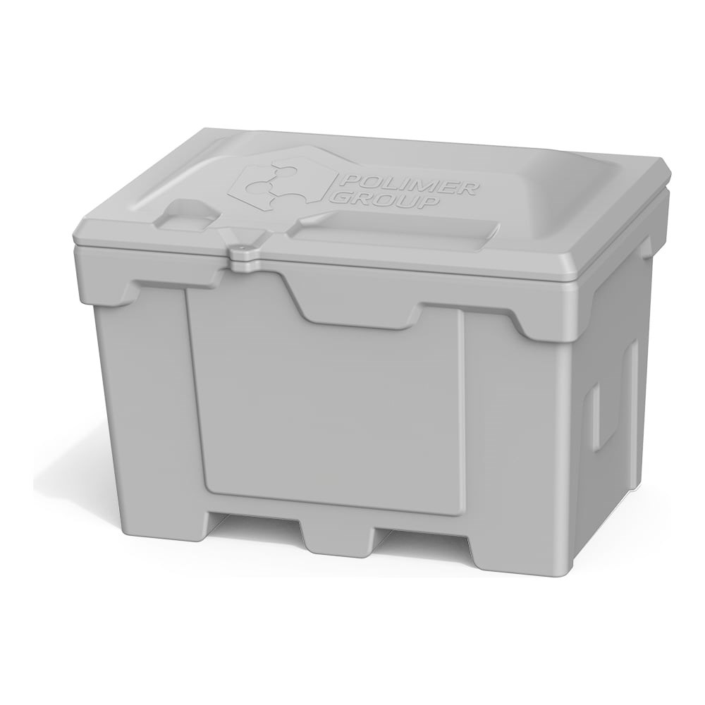 Ящик с крышкой POLIMER GROUP 500 л, цвет серый FB15006 производится ротационным формованием из полиэтилена низкой плотности высокого давления LLDPE. Благодаря этому готовое изделие не имеет швов. Сертифицировано для хранения пищевых продуктов. Модель имеет увеличенную прочность даже без дополнительных ребер жесткости.