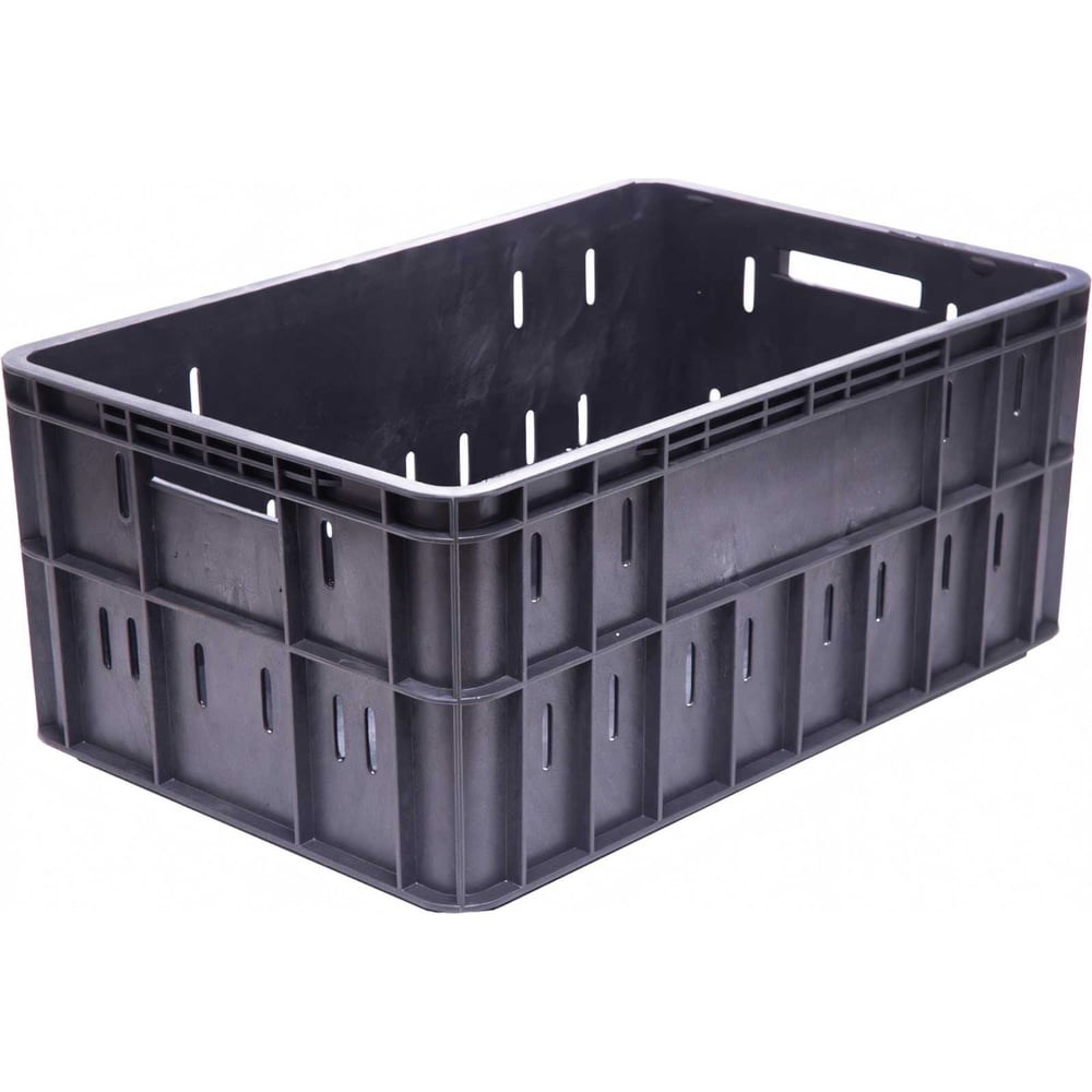 Ящик Тара.ру п/э 603x403x260 продольная перфорация, чёрный 25981 предназначен для хранения и перевозки колбасных изделий и мяса, а также любой другой продукции. Большое количество ребер жесткости делает модель устойчивой к нагрузкам.
