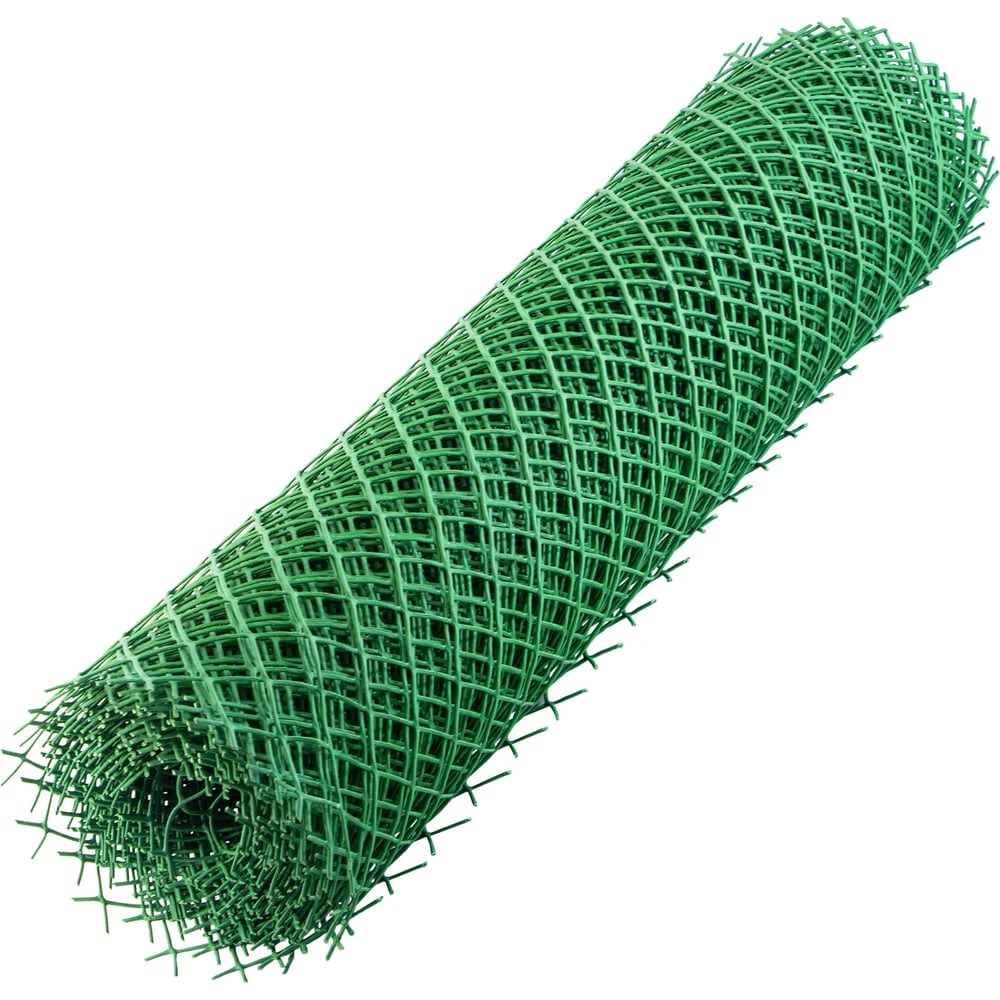 Зеленая пластиковая заборная решетка 64531, 1,3 х 20 м, в рулоне, с ромбовидными ячейками 70 х 55 мм, используется для создания изгороди. С ее помощью можно полностью оградить садовую и жилую территорию или зонировать отдельные участки. Возможно применение изделия в качестве каркаса для живой изгороди или элемента декора вместе с деревянными и каменными материалами. Также решетка пригодится для установки ограды на детских и спортивных площадках, создания вольеров для птиц и животных.