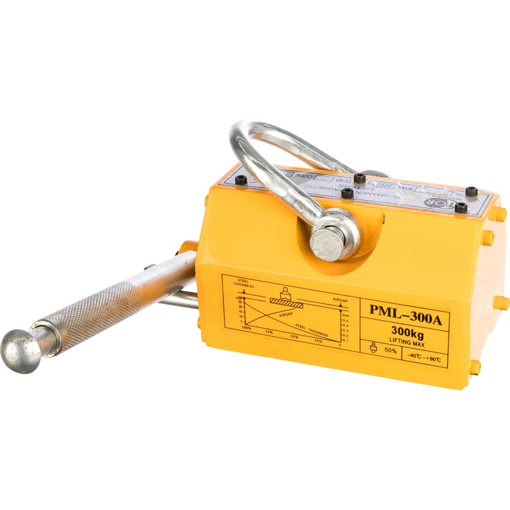 Магнитный захват TOR PML-A 300 Tor 122037 предназначен для фиксации, подъема и перемещения ферромагнитных грузов различной формы. Поднятый груз удерживается при помощи магнита. Оснастка имеет крепление в виде металлической скобы.