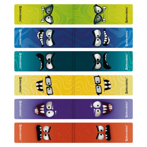 Закладки для книг МАГНИТНЫЕ, "МОНСТРИКИ", набор 6 штук, 60x20 мм, BRAUBERG, 116995