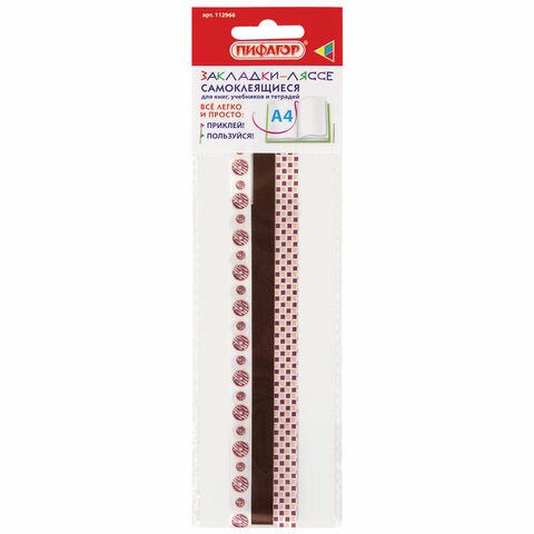 Закладки-ляссе фактурные для книг А4 (длина 38 см) "ШОКОЛАД", клейкий край, 3 ленты, ПИФАГОР, 112966