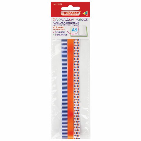 Закладки-ляссе фактурные для книг А5 (длина 28 см) "УЗОРЫ", клейкий край, 3 ленты, ПИФАГОР, 112972