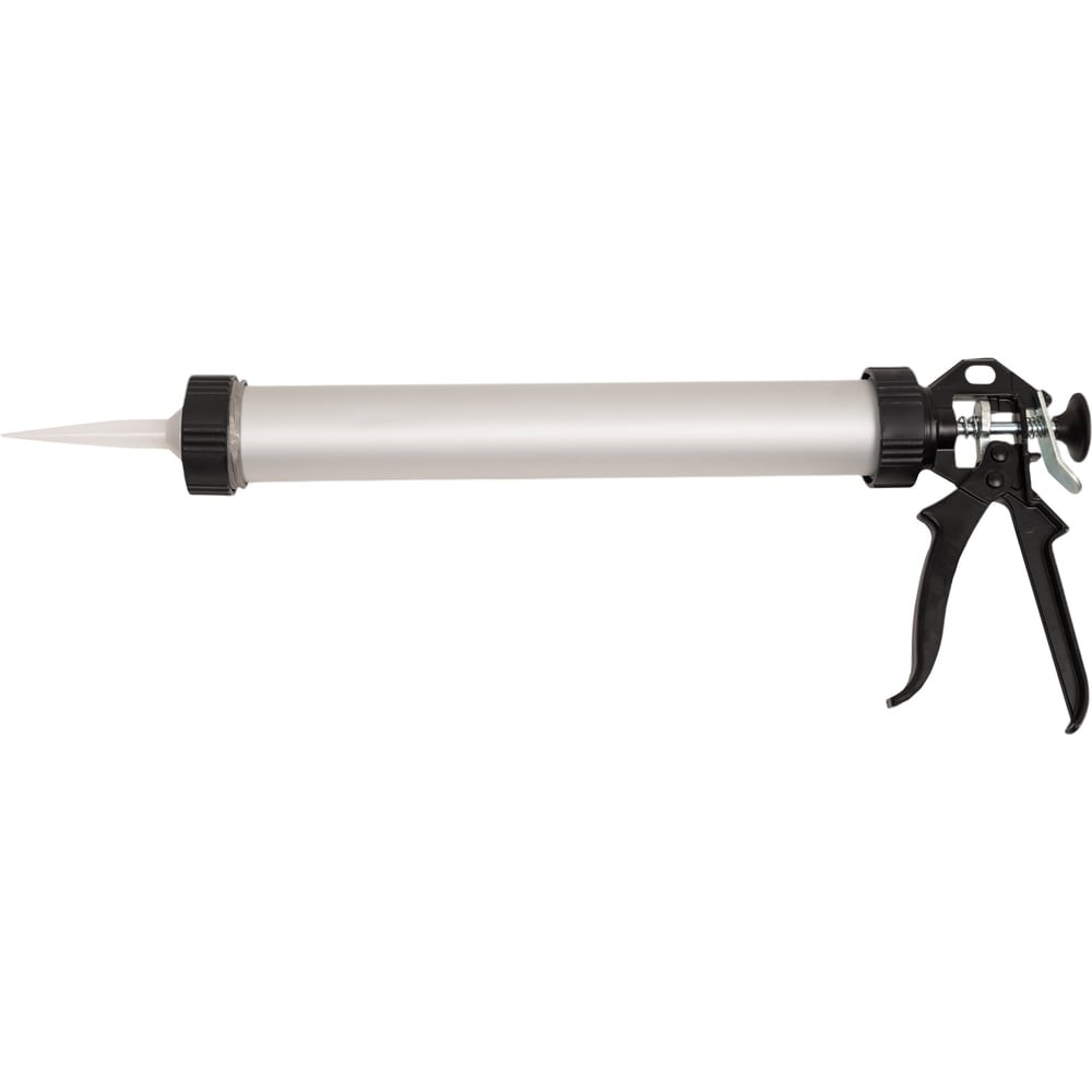 Закрытый пистолет для туб Gigant алюминиевый корпус, 600мл GCG-4 подходит для работы с герметиками без упаковки (в промышленной упаковке), в алюминиевой фольге и пластиковых картриджах объемом до 310 мл или 600 мл (в зависимости от модели), эргономичная форма рукоятки создает комфортные условия работы, а усиленный толкатель позволяет работать с составами любой вязкости. Изготовлен из особопрочных материалов. Оснащен иглой для удаления застывшего герметика/клея.