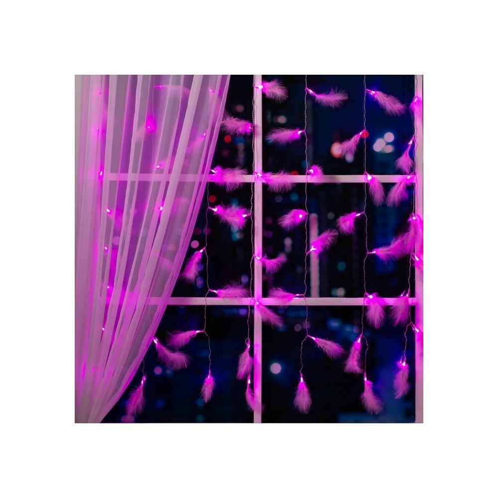 Занавес Luazon DECOR Перья, 3х1.4м, Н.С. LED-80-220V, 8 режимов, розовый 6929897