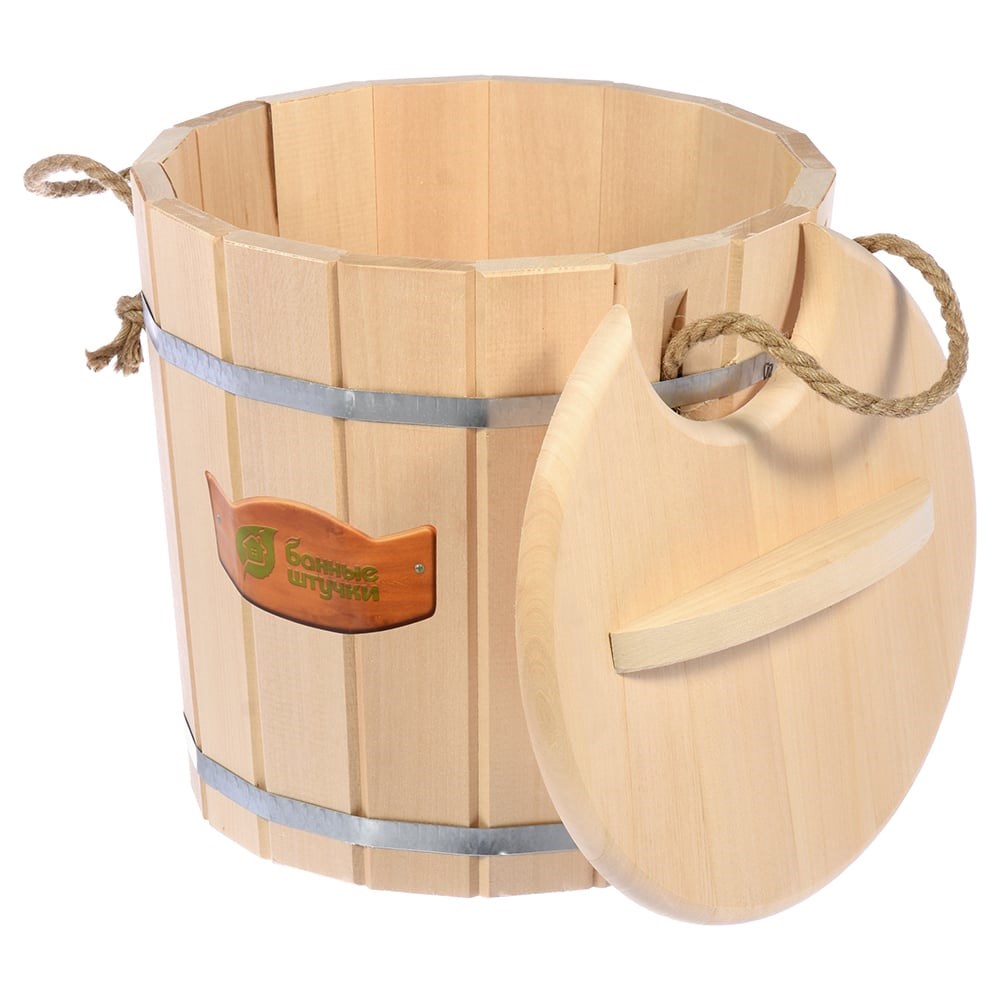 Запарник с крышкой Банные штучки 15 л 03592 отличается экологичностью благодаря тому, что изготовлен из дерева, что обеспечивает безопасность использования. Необходим для замачивания банных веников. Крышка с прорезью для ручки обеспечивает поддержание необходимой температуры.