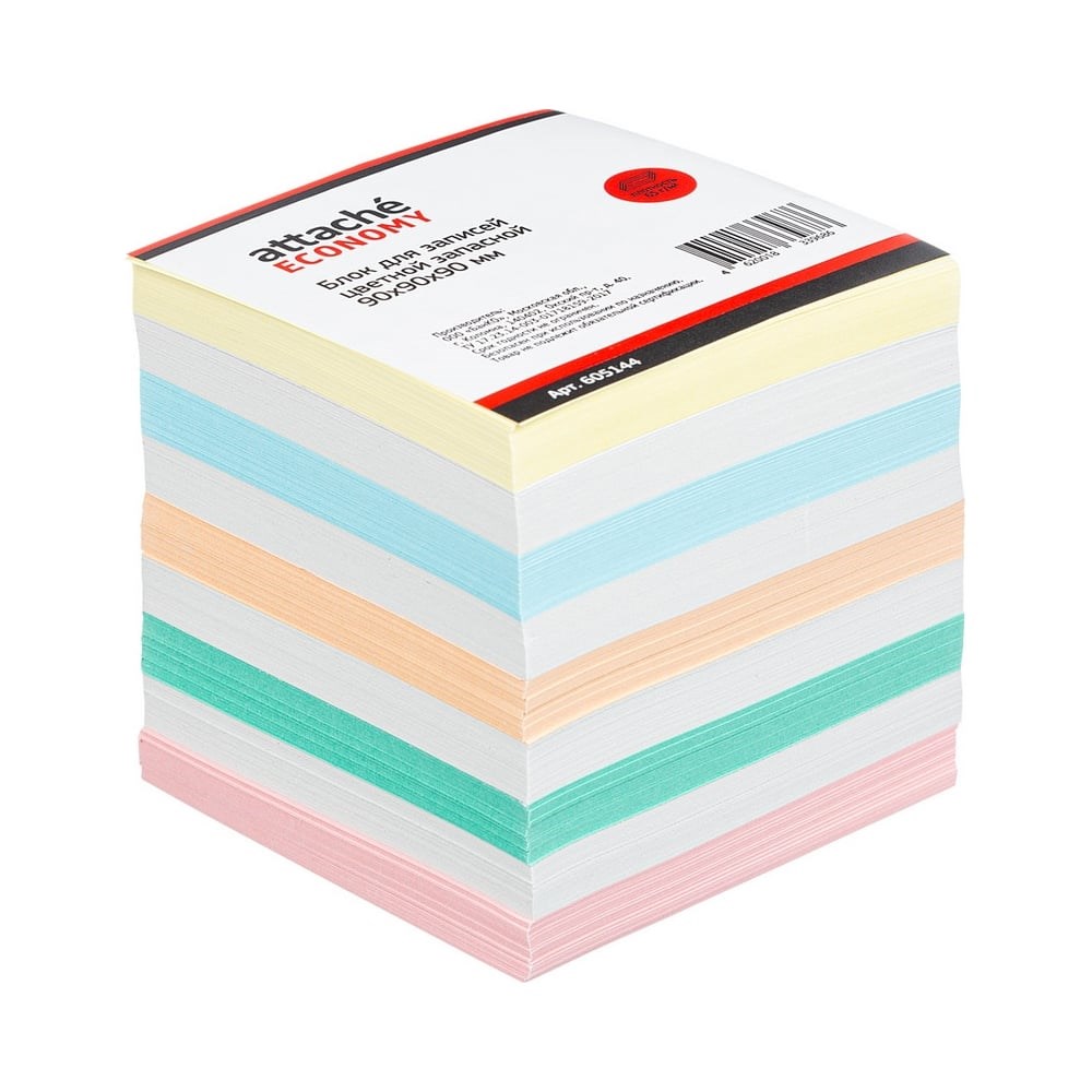Цветной запасной блок-кубик Attache ЭКОНОМ 9х9х9 60-80 г 605144 предназначен для быстрой фиксации информации. Благодаря универсальности подходит для использования в офисе или дома. Выполнен из плотной бумаги, что обеспечивает комфортное письмо любыми ручками и карандашами. Блок поставляется в пленке, поэтому защищен при транспортировке.
