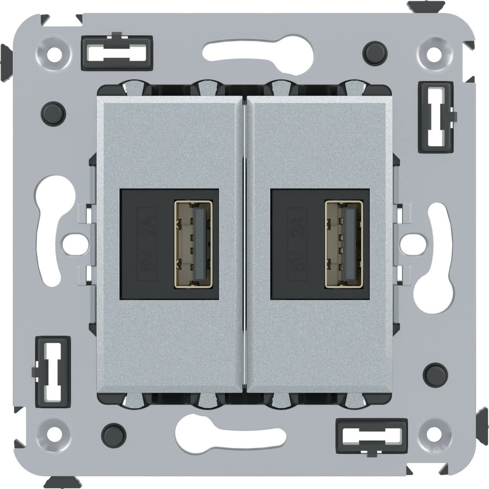 USB зарядное устройство в стену DKC, Avanti, закаленная сталь 4404543. Назначение: для монтажа в подрозеточные коробки глубиной не менее 45 мм (код 59301); используется для подзарядки электронных гаджетов. Характеристики: винтовые зажимы; номинальное напряжение – 220 В; частота – 50–60 Гц; напряжение на выходе – 5 В.