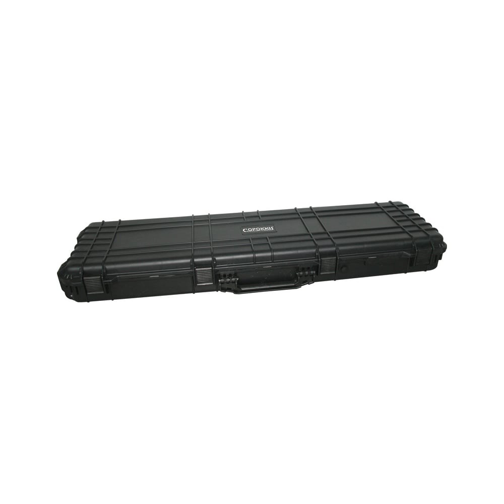 Кейс защитный для ружья на колесах — универсальный аксессуар для удобного размещения и безопасного хранения инструментария, техники либо оружия. Кейс 27.190 может вместить комплект из двух гладкоствольных ружей в сборе. Изделие изготовлено из высокопрочного пластика (сополимер полипропилена) и снабжено уплотнителем из резины, проушинами для навесного замка, а также клапаном для равномерного распределения давления. В комплект поставки кейса не входят поролоновые вставки (ложементы). При необходимости можно дополнить кейсмодульнымили сплошным ложементом. Главными преимуществами защитных кейсов являются: способность выдерживать высокие ударные нагрузки, что обеспечивает сохранность оборудования при транспортировке на любые расстояния; широкий диапазон постоянных рабочих температур от -20°С до + 80°С позволяет использование в различных климатических условиях; удобство эксплуатации и надежность благодаря эргономичному дизайну ручек. Защитный кейс имеет вес 9,5 кг и степень защиты от влаги и пыли IP67. С таким аксессуаром хранение и перевозка инструментов будут легкими и безопасными. Глубина основания кейса 90мм, глубина крышки 45мм. Внимание! Все ложементы продаются отдельно.