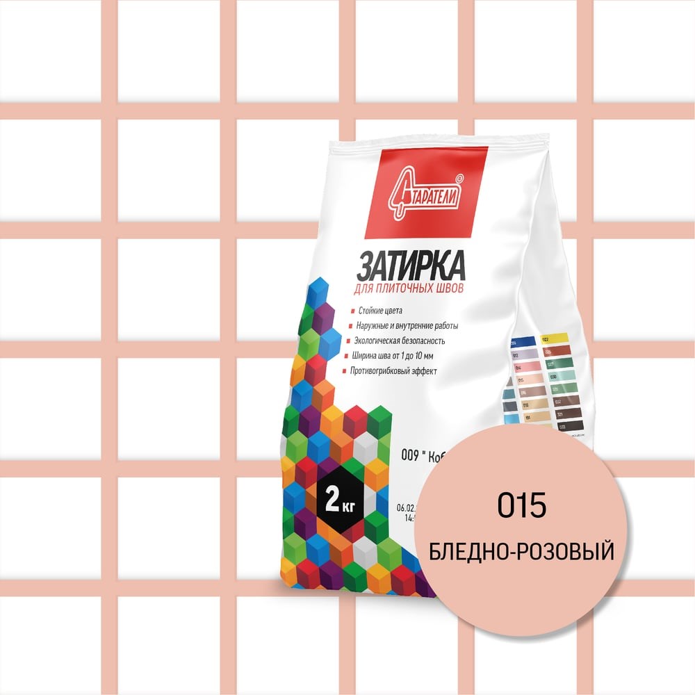 Затирочная смесь для плиточных швов Старатели 2 кг, бледно-розовый 015 3277/3530 - применяется для заполнения межплиточных швов шириной от 1 до 10 мм при облицовке стен и полов керамической плиткой, керамогранитом, натуральным и искусственным камнем, клинкерной и мозаичной плиткой. Используется на недеформирующихся основаниях и основаниях, подверженных температурным колебаниям. Подходит для помещений с нормальной и повышенной влажностью (в том числе неотапливаемых), а также для наружных работ.Формула для расчета расхода затирки:(A+B) / (A×B)× C × D ×1,13= кг/м²А - длина плитки (мм),В - ширина плитки (мм),С - толщина плитки (мм),D - ширина шва (мм)Подготовка основания:Основание и плиточный клей должны быть сухими, швы должны быть очищены от различных загрязнений. При обновлении затирки на существующей облицовке, старую затирку полностью удалить. Затирку швов можно начинать после затвердевания клеевого раствора, не ранее, чем через 24 часа после приклеивания плитки. Кромки впитывающих плиток рекомендуется увлажнить. Для неглазурованных, матовых или каменных плиток необходимо провести тестирование на окрашивание плитки пигментами, содержащимися в затирке.Рекомендации:Во избежание различия оттенков швов, рекомендуется на одной плоскости использовать затирку одной партии. В течение 24 часов после заполнения швов затирку необходимо предохранять от пересыхания, а в течение 7 дней - от контакта с водой.