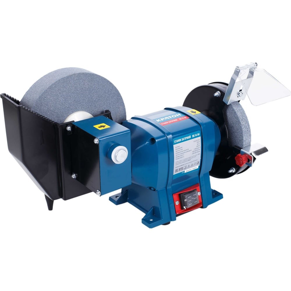 Заточной станок имеет две рабочие поверхности - для сухого и мокрого шлифования. Инструмент легко крепится к верстаку благодаря отверстиям в основании. Ориентирован на применение в небольшой домашней мастерской. В основе агрегата - надежный асинхронный двигатель.