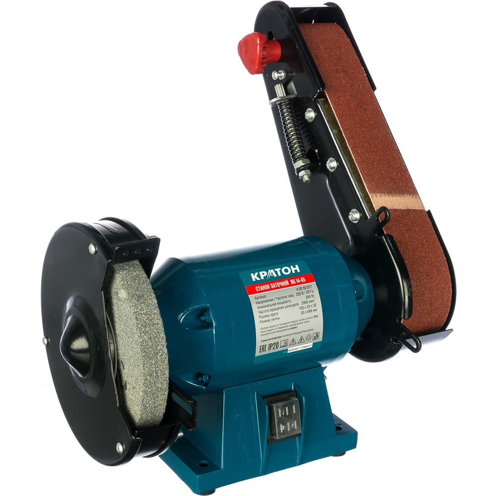 Заточной станок Кратон BG 14-05 4 02 03 017 имеет две рабочие поверхности (шлифовальный круг и абразивную ленту), благодаря чему увеличивается спектр решаемых задач. Регулируемый упор повышает точность заточки. Защитный экран увеличивает безопасность работы со станком. Размер ленты - 50х686 мм. Скорость перемещения ленты - 14 м/с.