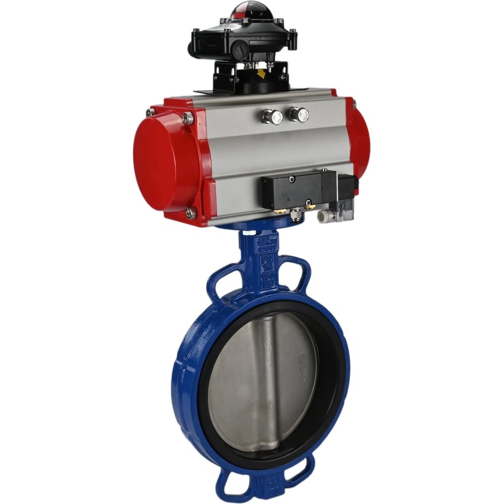 Затвор дисковый поворотный DN.ru GGG50-GGG40-EPDM с пневмоприводом DA-105, пневмораспределителем PND2-S1EM-52-1NC-J08-24VDC, блоком концевых выключателей LSB-210-02NM12-220/24. Параметры затвора: Температура окружающей среды: от -20⁰C до +100⁰C Климатическое исполнение: УХЛ4 Класс герметичности: A Рабочая среда: вода, воздух без примесей масла и жира, иные среды нейтральные к материалу; от -20⁰C до +120⁰C Материал корпуса/диска: чугун GGG50 / чугун GGG40 Материал уплотнения: EPDM Строительная длина: 56 мм Отверстия на ответных фланцах: 8х23 мм, на затворе параметры могут отличаться Параметры пневмопривода двойного действия: Рабочее давление: 2-8 бар Рабочая среда: фильтр. сжатый воздух Темп. окружающей среды: от –20⁰C до +80⁰C Крутящий момент (6 бар): 198 Нм Параметры пневмораспределителя: Рабочее давление: 1.5-8 бар Температура окружающей среды: от 0°C до +60°C Напряжение: 24В Ручное дублирование: есть Степень защиты: IP65 Параметры БКВ: Защита: IP65 Температура окружающей среды: от -40°C до +80°C Кабельный ввод: 2xNPT1/2” Напряжение: 12V, 24V, 38V, 48V, 110V, 220V, 250V Товар может отличаться от представленного на фото, при выборе ориентируйтесь на технические характеристики.
