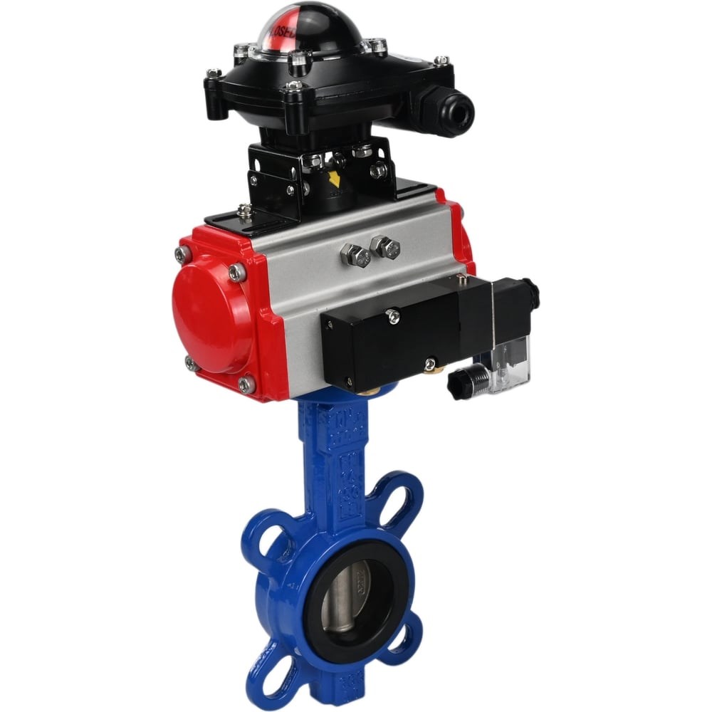 Затвор дисковый поворотный DN.ru GGG50-GGG40-EPDM с пневмоприводом SA-105, пневмораспределителем PND2-S1EM-52-1NC-J08-220VAC, блоком концевых выключателей LSB-210-02NM12-220/24. Параметры затвора: Температура окружающей среды: от -20⁰C до +100⁰C Климатическое исполнение: УХЛ4 Класс герметичности: A Рабочая среда: вода, воздух без примесей масла и жира, иные среды нейтральные к материалу; от -20⁰C до +120⁰C Материал корпуса/диска: чугун GGG50 / чугун GGG40 Материал уплотнения: EPDM Строительная длина: 46 мм Отверстия на ответных фланцах: 4х19 мм, на затворе параметры могут отличаться Параметры пневмопривода с возвратными пружинами: Рабочее давление: 2-8 бар Рабочая среда: фильтр. сжатый воздух Темп. окружающей среды: от –20⁰C до +80⁰C Крутящий момент (возврат пружин 0°): 63.3 Нм Параметры пневмораспределителя: Рабочее давление: 1.5-8 бар Температура окружающей среды: от 0°C до +60°C Напряжение: 220В Ручное дублирование: есть Степень защиты: IP65 Параметры БКВ: Защита: IP65 Температура окружающей среды: от -40°C до +80°C Кабельный ввод: 2xNPT1/2” Напряжение: 12V, 24V, 38V, 48V, 110V, 220V, 250V Товар может отличаться от представленного на фото, при выборе ориентируйтесь на технические характеристики.