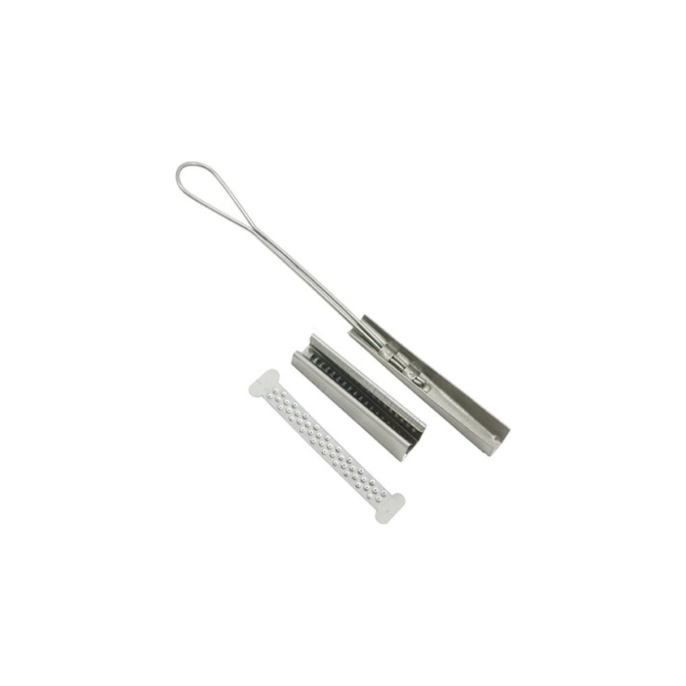Зажим SUPRLAN ODWAC-22 для плоского кабеля 08-0308 предназначен для построения воздушных линий с использованием волоконно-оптического кабеля плоского сечения. Его конструкция сделана таким образом, что кабель равномерно и плотно зажимается по всей длине зажима. Данный анкерный зажим ODWAC обеспечивает подвес, простую и быструю фиксацию оптического кабеля FTTH типа «8» с несущим элементом на крюках опор и стен зданий. Вставки с фиксирующими выступами препятствуют проскальзыванию кабеля даже при больших продольных нагрузках. Зажим имеет легкий и прочный металлический корпус с проволочной петлей, клиновидную вставку и плоскую прижимную вставку с многочисленными выступами.