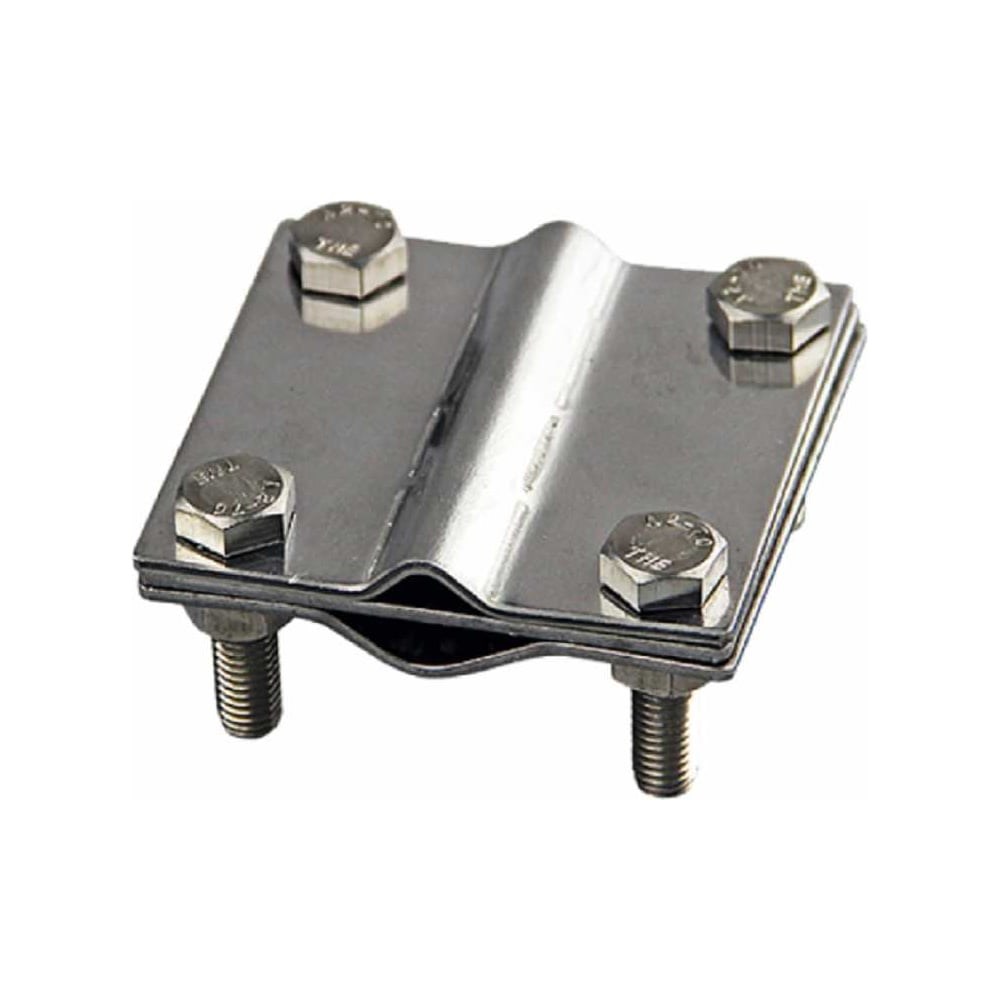 Зажим предназначен для соединения оцинкованного стержня заземлителя диаметром от 12 до 20 мм с полосой шириной до 40 мм или токоотводом 8-10 мм. Зажим стягивается при помощи четырех шестигранных болтов с гайками, выполненных из нержавеющей стали. Является составляющей комплектов заземления.