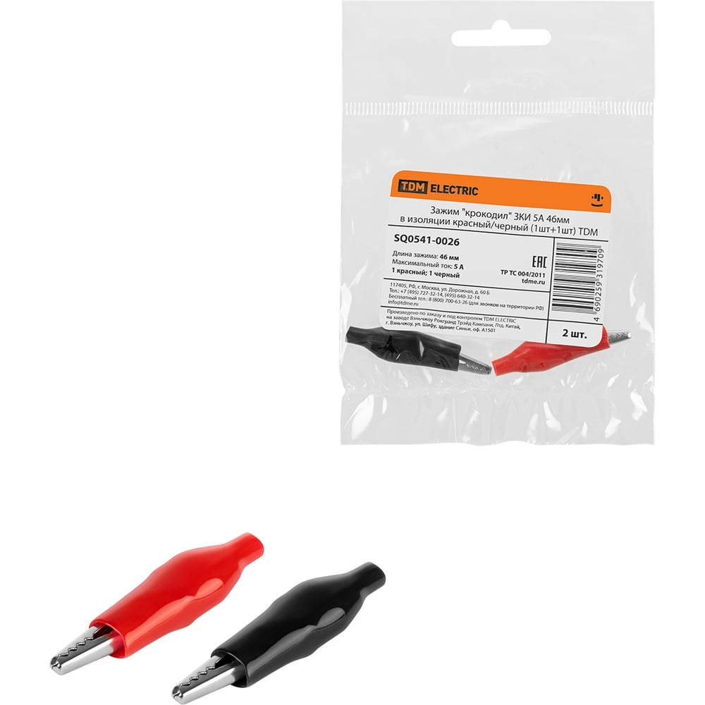 Зажим крокодил TDM ELECTRIC ЗКИ 5А, 46мм, в изоляции, красный/черный