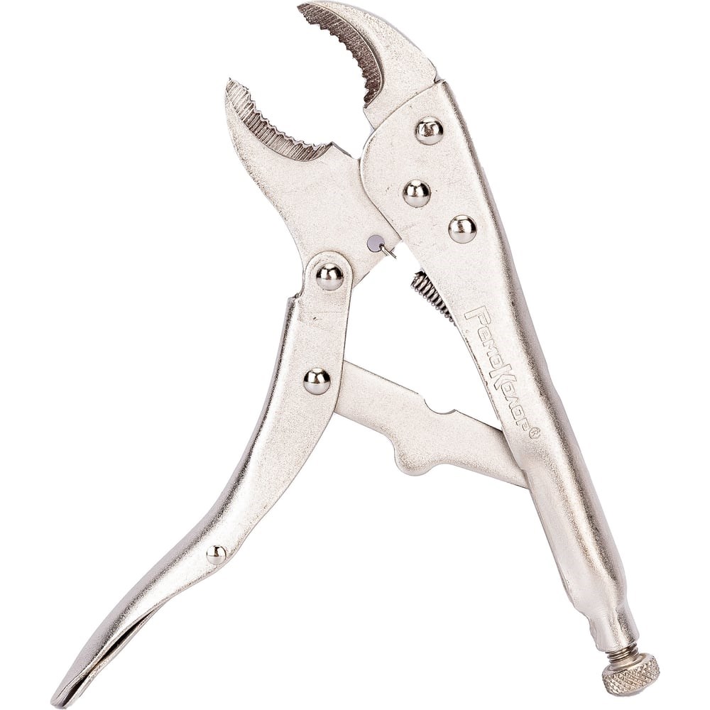 Зажим с фиксатором РемоКолор 250мм 34-3-250 обеспечивает надежную фиксацию и высокое давление опрессовки благодаря особо прочной конструкции и системе коленчатых рычагов. Корпус приспособления изготовлен из кованой стали, хромированной для защиты от коррозии и прошедшей процесс закалки.