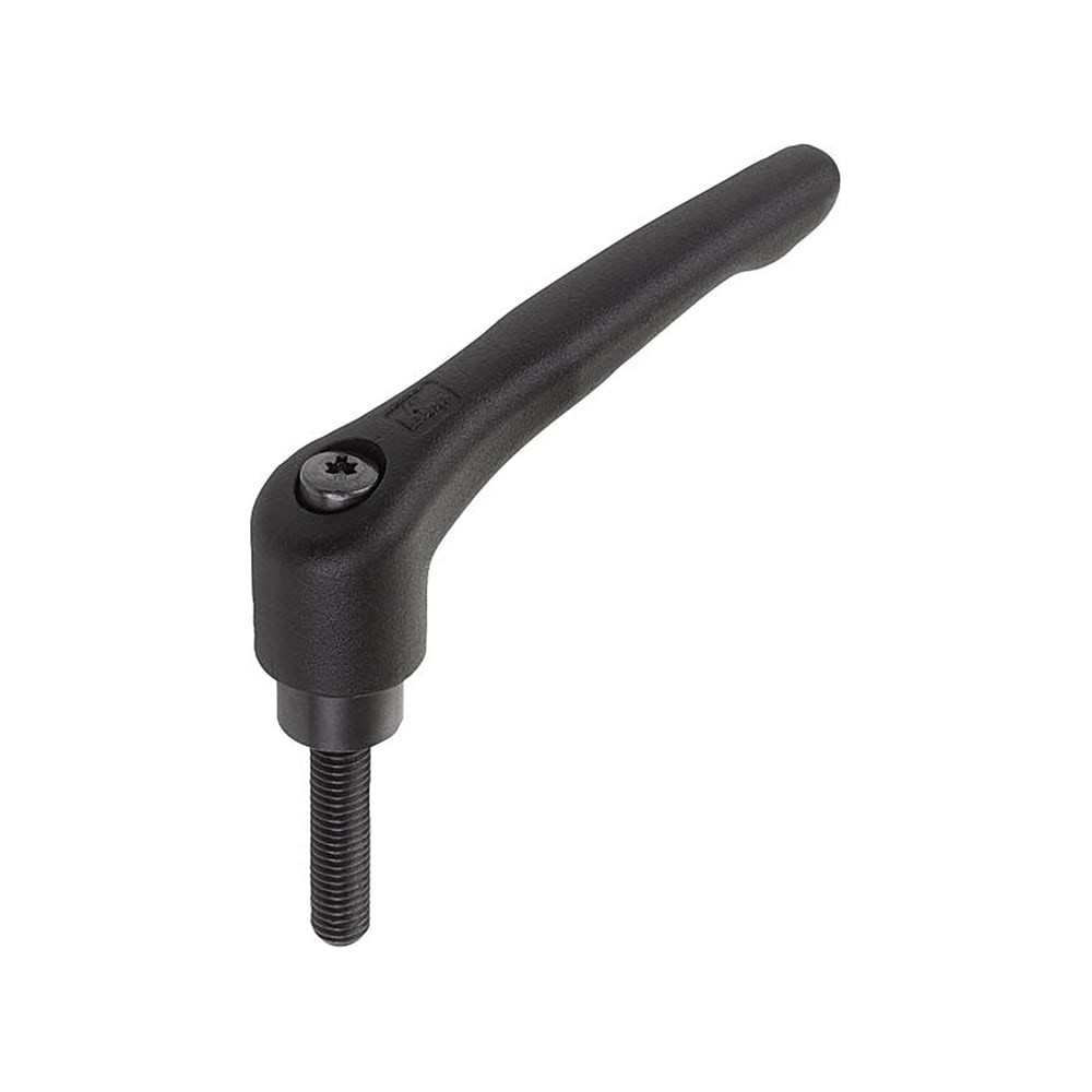 Зажимной рычаг предназначен для механизмов, станков и различного оборудования. Имеет высокую прочность на изгиб и излом. Обеспечивает максимальную передачу усилия. Материал: Рукоятка из стали 1.0401. Другие стальные части: коэффициент прочности 5.8. Исполнение: Рукоятка: полимерное покрытие с микроструктурой. Стальные части воронёные. Резьба: M12.