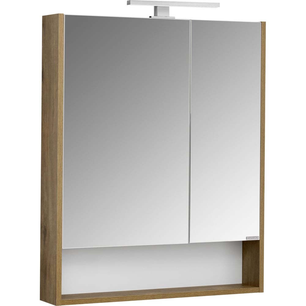 Зеркальный шкаф Акватон Сканди 70 белый, дуб рустикальный 1A252202SDZ90 включает регулируемые стеклянные полочки за зеркальным фасадом и открытую нишу для косметических средств, которые всегда должны быть под рукой. По желанию можно дополнительно приобрести светильник.
