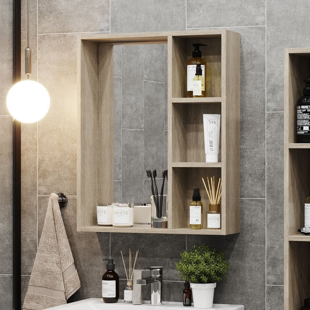 Зеркальный шкаф Onika ТИМБЕР 70 отражает современные тенденции в дизайне мебели для ванных комнат: минимализм с простыми и понятными формами, цвета дуба с роскошной текстурой, отсутствие лишних деталей. 3 открытые полки обеспечивают быстрый доступ к часто используемым аксессуарам, место под зеркалом создано для косметических средств или декоративных элементов. Зеркальное полотно создано на основе серебряной амальгамы, которая обеспечивает качественное изображение, влагостойкость и долгий срок эксплуатации. Зеркальный шкаф выполнен из ЛДСП, устойчивой к механическим воздействиям, перепадам температур и высокой влажности. Подвесы для крепления шкафа к стене - в комплекте. Габариты изделия 70x14x70 см. Гарантия 2 года.
