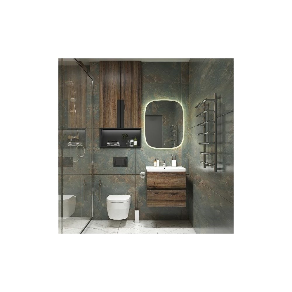 Зеркало с подсветкой Art&Max Forli 650x800 AM-For-650-800-DS-F оснащено светодиодной LED-подсветкой с диммером. Питание светильника осуществляется от сети 220В через блок питания постоянного напряжения. Корпус выполнен из УПС-пластика, ореольная подсветка "холодного" типа. Температура подсветки 6000К.