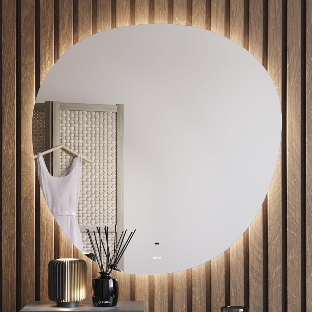 Зеркало круглое неправильной формы 80х80см с подсветкой BOND Круг M37ZE-8080 разработано итальянскими дизайнерами в уникальном исполнении, имеет стильный дизайн и отлично смотрится в современном интерьере. Оно изготовлено из высококачественных комплектующих от мировых производителей и имеет влагостойкое зеркальное полотно AGC премиум толщиной 4мм европейского производства по стандарту IP 44. Высокую яркость обеспечивает установленная с тыльной стороны светодиодная лента, придающая свету эффект затмения. Зеркало оснащено беcконтактным сенсорным выключателем с диммером, с помощью которого можно регулировать мощность освещения, просто взмахнув рукой и не оставляя отпечатков на зеркале. С тыльной стороны находятся удобные крепления для установки и шнур с вилкой для включения в розетку.