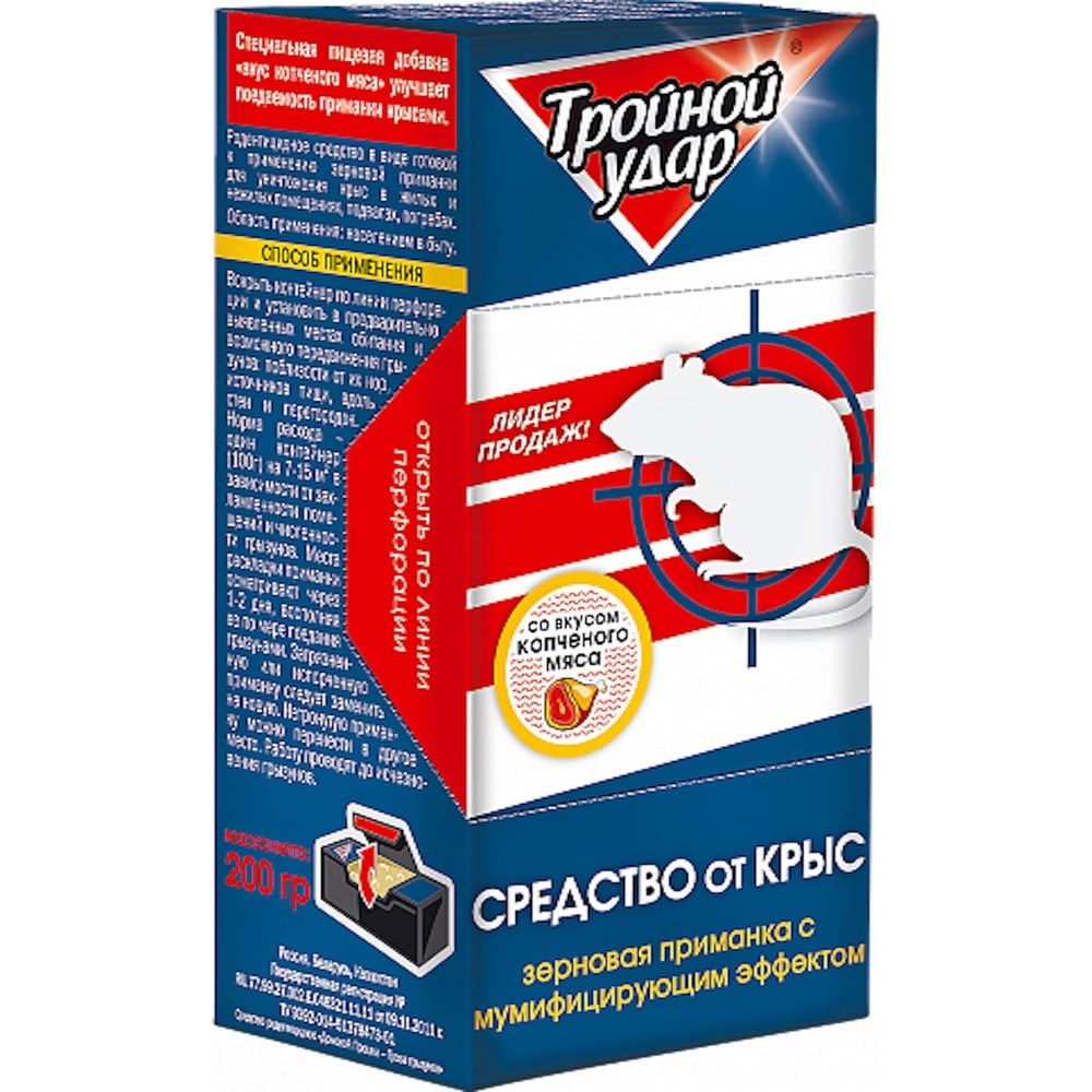 Зерно Домовой Прошка ТРОЙНОЙ УДАР контейнер 200 г 20146 обладает мумифицирующим эффектом. Является готовой к применению зерновой приманкой. Применяется для уничтожения крыс в жилых и нежилых помещениях, подвалах, погребах. Содержит специальный пищевой привлекатель для крыс - вкус копченого мяса.