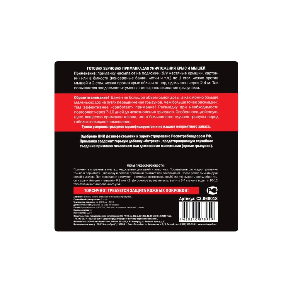Зерновая приманка NoGuest 100 г СЗ.060018 - это привычный тип еды для грызуна, поэтому начало поедания приманки после раскладки наступает очень быстро. По мере поедания приманку разложить повторно до полного уничтожения грызунов. Желательно использовать закрытые емкости, доступные только для грызунов (обрезки труб, пластмассовые контейнеры и др.).